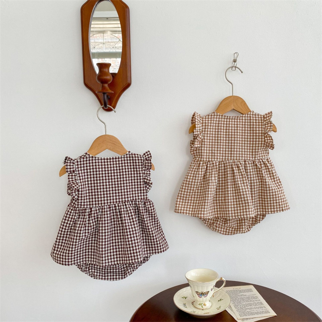 ベビー服 女の子 チェック柄 フラッタースリーブ セットアップ ブラウス ブルマー